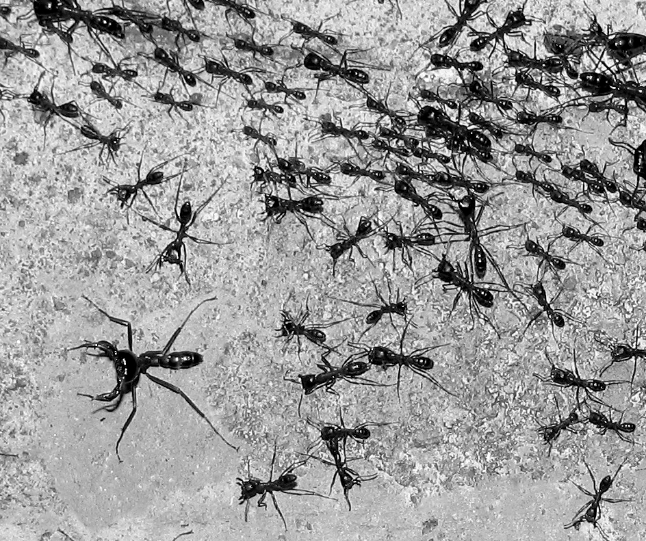 I swung my flashlight beam onto the floor. Thousands – yes thousands – of ants were parading around the door jamb and the perimeter of the room. A two inch wide swath that flowed like a black stream stretched from the back door of the house and now encircled my bed. I was under attack.