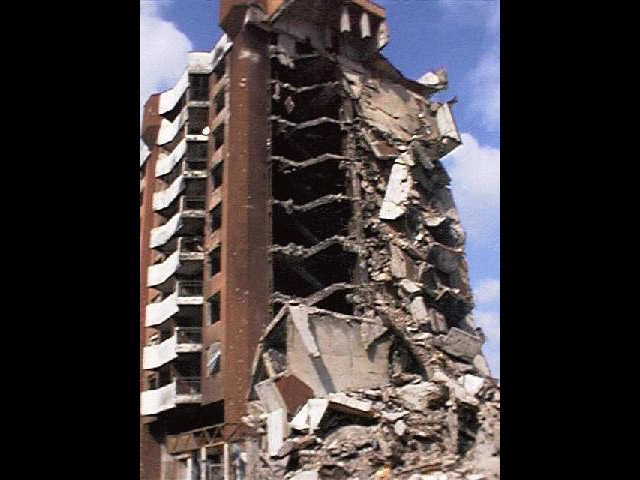 The apartment where we are staying is very interesting. It is an old, high-ceilinged place on the top of a hill. It has a great view from the balcony overlooking the main part of the city and the mountains beyond. There are several places in the wooden floors that are splintered from bullets that would have come through the windows during the war and the outside of the building is pock-marked with the shelling from grenades. Buildings nearby remain totally gutted.