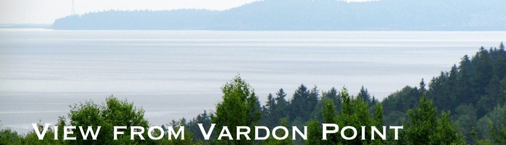 They returned to New Brunswick in 1786 to a piece of property that was just north of St. Andrews, a point of land that for years was called Vardon Point. It is now at the end of the Holt Point Road at Bocabec, New Brunswick. There is not much there now and no trace of the Vardon’s who sold the land and left for Ontario in the mid 1800, after Robert and Phebe died. The point is still mostly wilderness with a few houses scattered along the bay.. The markers in a cemetery near the road from earlier than the 1850’s are so worn as to be unreadable. I suspect that one of them is for my fourth-great grandfather.