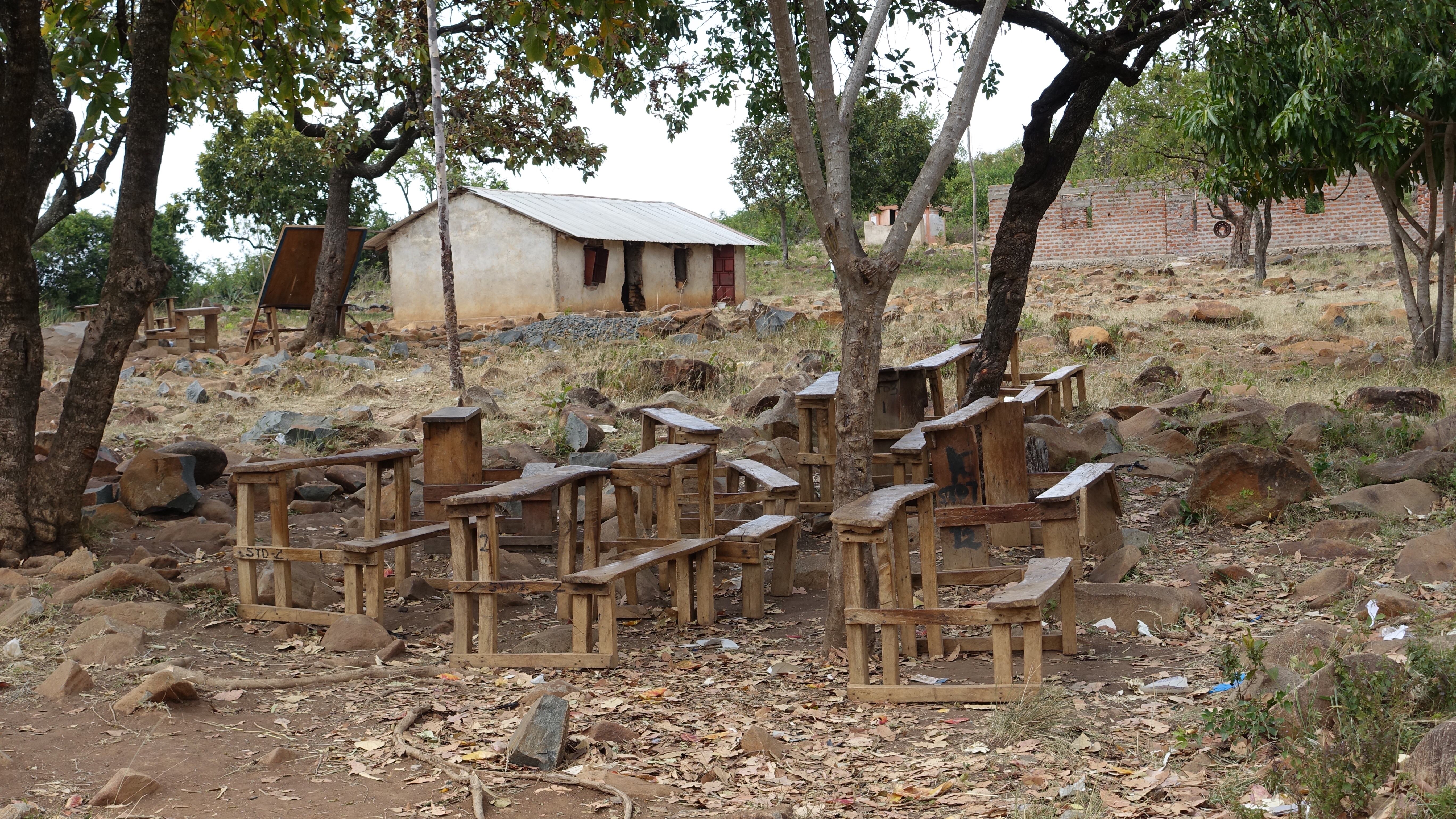 The students were away from the school on their lunch break but three teachers sat under a tree marking notebooks. They took me into the classrooms to show me the desks that CanAssist had funded last year. This was a bit of a win-win since the desks, rudimentary but functional, we’re all made by local carpenters, thereby providing some modest local employment as well as providing the desks for the students. CanAssist had also provided a rainwater catchment tank. The teachers told me that after a good rain, the tank fills and can supply drinking water for the 500 pupils at the school for several weeks. Prior to getting the desks, the students, usually 60-80 per classroom, were sitting on the floor to learn.