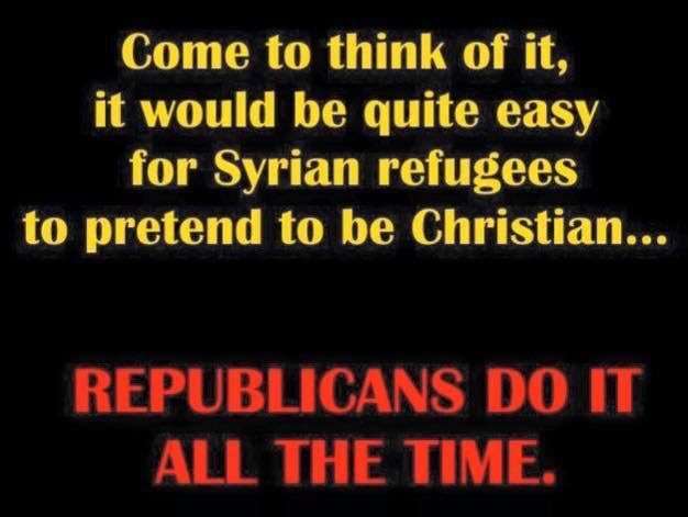 “All of the Bible Belt States refusing to take refugees, will soon be putting on Christmas plays about a Middle Eastern family, seeking shelter and being turned away by the heartless.”