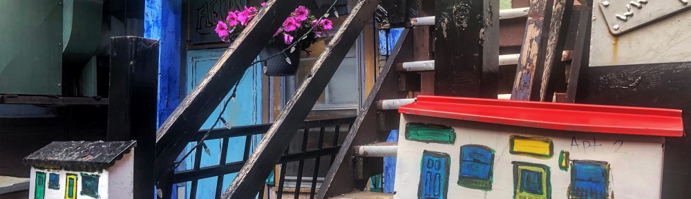 As I walked along Wellington Street I glanced up at the little passageway that is marked “Martello Alley“. It looked colourful so I stopped to take a photo. I always thought that this was an antique dealer’s place and had never ventured in. The proprietor, David Dossett, obviously another extrovert, wearing a shirt splattered with paint, saw me taking the photo and called me in.