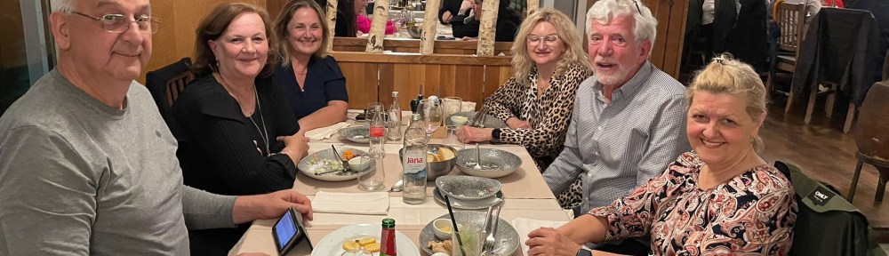 Saša Lonćar translated for me for several years and we became very close, he is now an interventional cardiologist. When he wasn’t driving me around last month he was putting in stents and saving lives. It was a treat to meet his family – wife Sandra and two of his three daughters, Lana and Hana. I also met his older daughter Nastasija who is not in this photo. It was a delight to hang out with him once again!In Banja Luka I had dinner with two “graduates” of our Family Medicine Education Programme, Irena and Brankica, whom I mentored several years ago.It was a real delight to see Muharem Zildzic, who was a stalwart in helping us establish Family Medicine in Tuzla. And Nermin translated for me on several occasions – he is now a gastroenterologist and leader in the Tuzla internal Medicine Department.These ladies were all “students”of mine and we connected regularly over several years. The Tuzla department was always enthusiastic and diligent and a pleasure to work with.Having dinner with some of the Tuzla bunch.I enjoyed seeing Elvir again! He also translated for me when he was a medical student and is now a Psychiatrist in Tuzla.This was at the Academic Half Day in Tuzla. Familiar faces and current residents in their programme.I made a special trip out to Gornja Tuzla. I always had a soft spot for this little Ambulanta and they are still going strong under Amila’s leadership.Saša was with me for a whole week as I wended my way through the country. As in the past, we took opportunities to share local beers whenever we got the chance.Zaim Jatic was one of our first Residents in Sarajevo and has been a leader in Family Medicine both locally and country-wide.Muco and Aldina and Lejla took me back to my old hang out “Avlija” for lots of good food and good cheer. Hvala!I was grateful to Branimir Vujica for taking the time to show me his village and practice in Kiseljak and then taking me to Zenica to connect with friends and new trainees there.After the AHD in Zenica, Branimir, Larisa and Ibrahim Gledo and I had lunch. It happened to be Gledo’s last day before retirement so we had two things to celebrate.After attending an Academic Half Day in Mostar, I went to dinner with some Mostar Family Medicine stalwarts. So nice to share this time with them.And last but certainly not least… I had an evening with Adis Pasalić who was a young med student when we met. We spent a lot of hours together on the road and in the classroom and I was so pleased to reconnect with him in Split where he is based as a busy ophthalmologist.