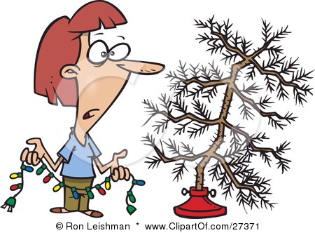 As the last touches are made, Mom, clearly not happy with the crooked stem, the piece of twine holding the tree up or those “bare spots”, comments how the tie-up to the curtain rod spoils the whole thing. It looks, to her, that the tree, as flawed as it is, will stand on its own. Dad, becoming ever more exasperated by the editorial comments coming from the rest of us, takes some scissors and says “Well, let’s see.” He cuts the twine. The whole tree falls forward in a heap. Mom, hands on her hips sighs and says what a poor choice this tree was.
