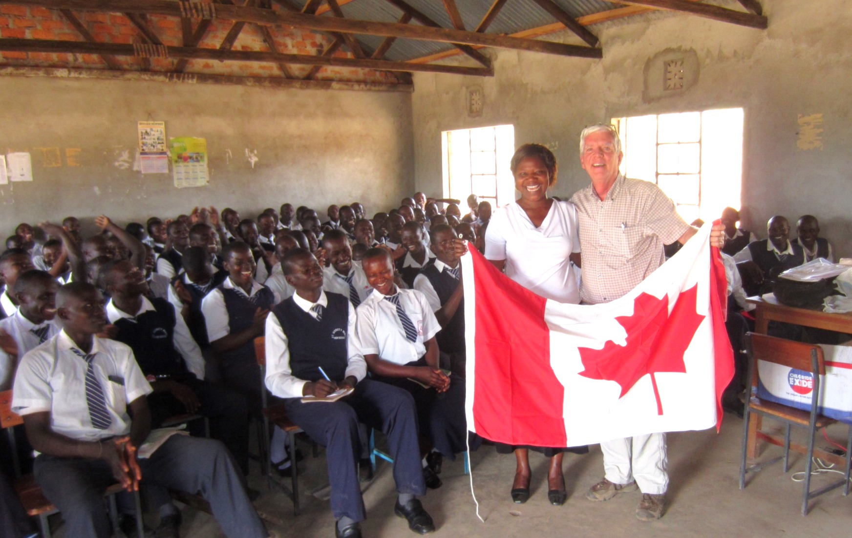 These are the students at Ramula Secondary School, taken near the water tanks, installed with CanAssist donor support. Before these tanks were put in, the water for the school was brought in by donkey from a stream. The student have much less gastrointestinal illness with this clean water available.